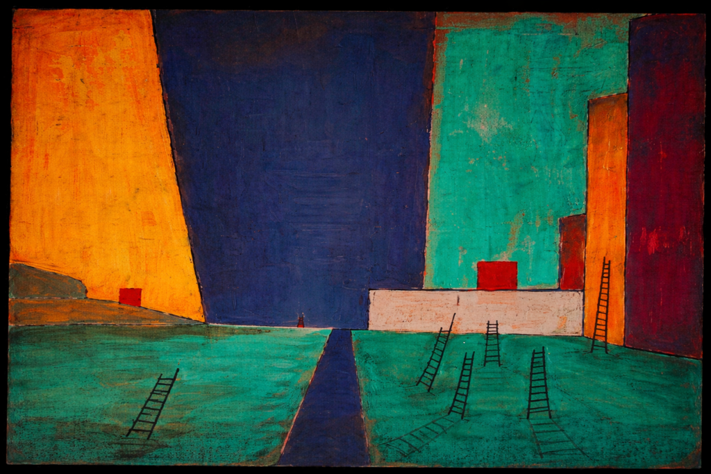 Rather than decorative abstraction, his paintings operate as spatial propositions — structured balances between mass and void, horizon and suspension. Silence is not absence; it is architecture.